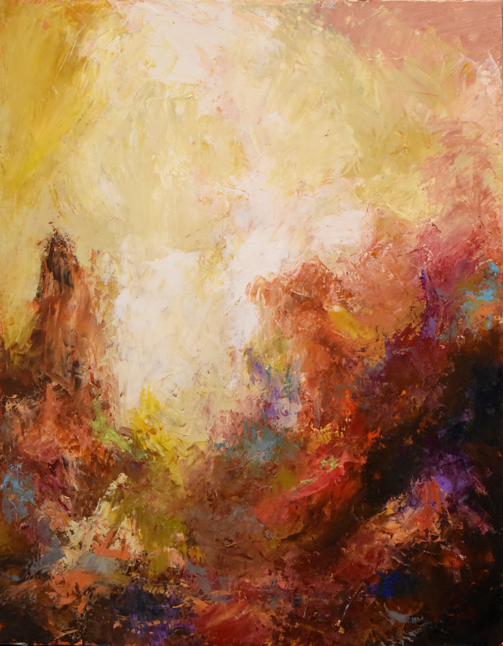 All of my painting and music are based on a parable I wrote. My philosophy of art professor asked me to write a story and then paint 10 paintings. Over time, the story grew; I turned it into a series of poems, and I kept painting more and more until it became a universe of shapes and sounds.