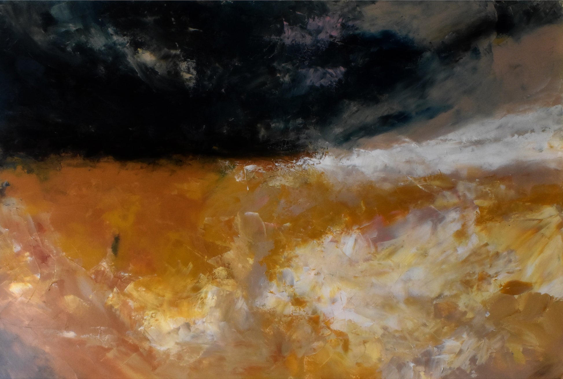 The "Brumas (Mist)" series belongs to the style known as 'Contemporary Landscape.' In it, the transitions of color and texture are explored to capture the atmosphere and movement in the landscape.