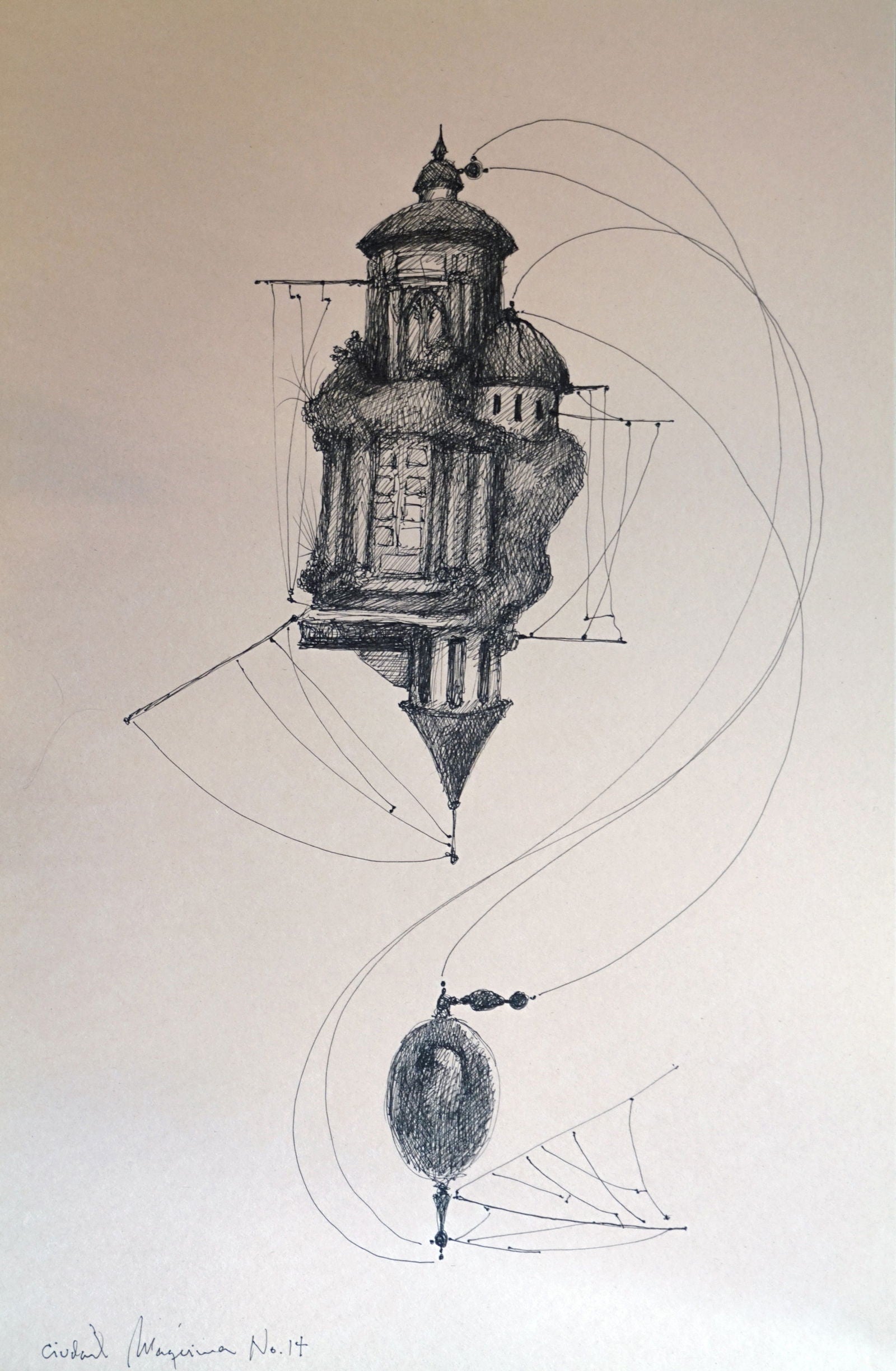 Inspirada por una serie de poemas que titulé 'La Parábola', cada una de mis obras lleva consigo un trasfondo único. A mediados de 2022, me sentí abrumado por la percepción de una sociedad que parecía una inmensa maquinaria, y yo en medio; caminando por calles igual que como se camina dentro de una ciudad industrial, solo que en mi cabeza, no estaba en una ciudad máquina que producía nada bueno, ni útil. Ahí fue donde nació 'Ciudad Máquina'. En esta serie yo reflejo la maquinaria que Adán y Eva construyeron en mi parábola, un entramado de estructuras tanto opresivas como liberadoras que capturan la dualidad de la tecnología y la naturaleza humana. Exploro esta interacción compleja con líneas dinámicas y detalles meticulosos en cada dibujo en tinta sobre papel. Invito a los espectadores a reflexionar sobre nuestra relación con el entorno construido y el natural. Además, toda la serie tiene su espacio sonoro. Obras que yo compongo para intensificar la experiencia visual y emocional de la serie, creando un diálogo sinérgico entre los sentidos auditivos y visuales que enriquece la interpretación de cada espectador, una experiencia sinestésica.