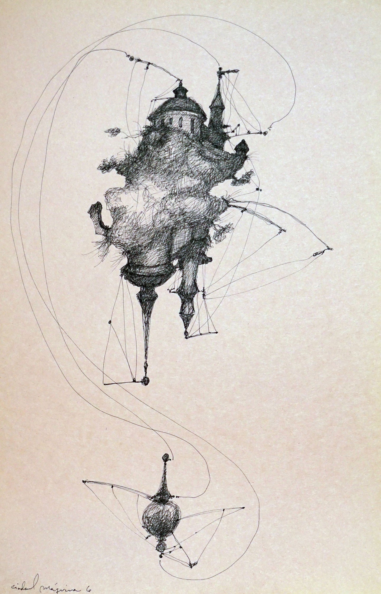 Inspirada por una serie de poemas que titulé 'La Parábola', cada una de mis obras lleva consigo un trasfondo único. A mediados de 2022, me sentí abrumado por la percepción de una sociedad que parecía una inmensa maquinaria, y yo en medio; caminando por calles igual que como se camina dentro de una ciudad industrial, solo que en mi cabeza, no estaba en una ciudad máquina que producía nada bueno, ni útil. Ahí fue donde nació 'Ciudad Máquina'. En esta serie yo reflejo la maquinaria que Adán y Eva construyeron en mi parábola, un entramado de estructuras tanto opresivas como liberadoras que capturan la dualidad de la tecnología y la naturaleza humana. Exploro esta interacción compleja con líneas dinámicas y detalles meticulosos en cada dibujo en tinta sobre papel. Invito a los espectadores a reflexionar sobre nuestra relación con el entorno construido y el natural. Además, toda la serie tiene su espacio sonoro. Obras que yo compongo para intensificar la experiencia visual y emocional de la serie, creando un diálogo sinérgico entre los sentidos auditivos y visuales que enriquece la interpretación de cada espectador, una experiencia sinestésica.